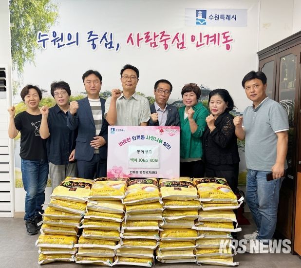 KPSNEWS 기자 | 수원시 팔달구 인계동에 위치한 동아광고는 이달 4일 다가오는 추석 명절을 맞아 인계동 행정복지센터에 백미 10kg 40포를 후원했다.