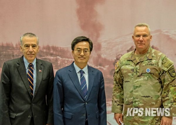 KPSNEWS 김채경 기자 | 김동연 경기도지사가 필립 골드버그(Philip S. Goldberg) 주한미국대사와 함께 경기도 평택 주한미군 캠프 험프리스에서 폴 러캐머라(Paul LaCamera) 주한미군사령관·한미연합군사령관·유엔군사령관, 윌러드 벌러슨(Willard M. Burleson III) 미8군사령관, 라이언 키니(Ryan P. Keeney) 미7공군부사령관 등 주한미군 핵심 장성들을 만나 경기도와 주한미군 협력 방안을 논의했다.