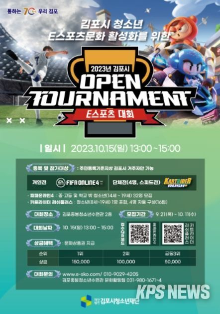 이벤트 경기는 주민등록기준지상 김포시 거주자만 참여 가능하며 ▲ 개인전 피파온라인4(14~19세 청소년) ▲ 단체전 카트라이더 러쉬플러스(8~19세 청소년 1명 포함된 4명 자율구성 팀)이며, 각 종목별 참가자를 선착순으로 모집한다.