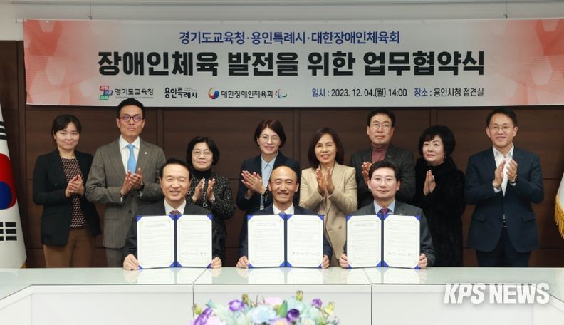 KPSNEWS 김채경 기자 | 용인특례시는 4일 경기도교육청, 대한장애인체육회와 함께 내년 2월 용인특례시청 인근 옛 차량등록사업소 터에 문을 열 계획인 ‘장애인 가상현실 스포츠체험센터’ 설립 등 장애인체육 발전을 위한 업무협약을 체결했다.