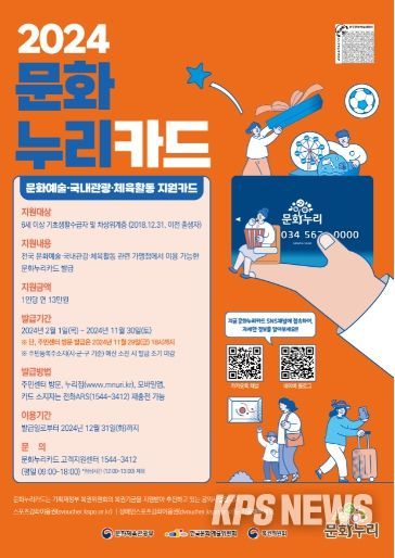 KPSNEWS 김채경 기자 | 경기도가 취약계층의 문화비 부담 완화를 위하여 2024년 문화누리카드 지원금을 연간 11만원에서 13만원으로 상향 지원한다.