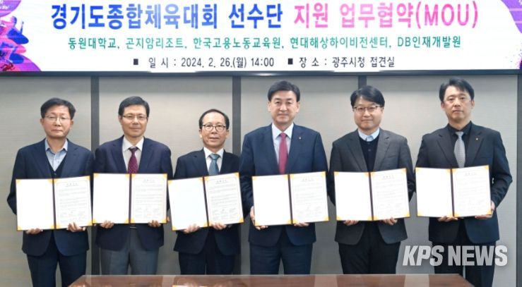 KPSNEWS 김채경 기자 | 광주시는 26일 2026년 경기도 종합체육대회의 성공적 유치를 위해 동원대학교, 곤지암리조트, 한국고용노동교육원, 현대해상하이비전센터, DB인재개발원과 업무협약을 체결했다.