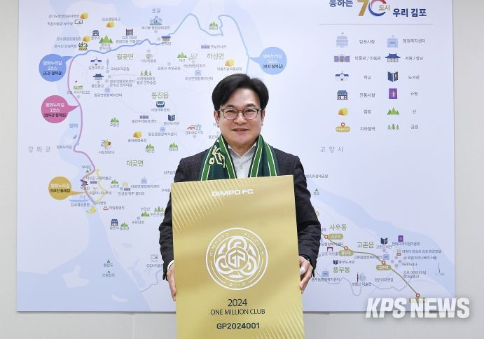 KPSNEWS 김채경 기자 | 김포FC의 구단주인 김병수 김포시장이 김포FC 자체 멤버십 프로그램인 원밀리언 클럽 1호 구매자가 됐다고 지난 23일 밝혔다. 김 시장은 2024시즌을 앞두고 김포FC 홍보에 앞장서며 김포FC 응원에 적극 나섰다.