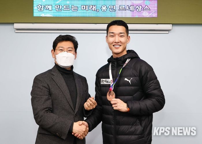 KPSNEWS 김채경 기자 | 이상일 용인특례시장이 파리 올림픽 금빛 메달을 향해 도약하는 대한민국 남자 높이뛰기 간판 우상혁 선수를 만나 앞으로도 대회에서 좋은 모습을 보여달라고 격려했다.