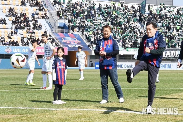 KPSNEWS 김채경 기자 | 수원FC 구단주인 이재준 수원시장이 9일 수원종합운동장에서 열린 수원FC의 홈 개막전에서 시축하고, “수원FC의 위대한 여정에 함께하겠다”고 말했다.