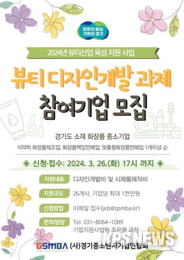 KPSNEWS 김채경 기자 | 경기도와 경기중소벤처기업연합회가 2024년 뷰티산업 육성 지원 사업에 참여할 도내 뷰티 중소기업 26개 사를 이달 26일까지 공개 모집한다.