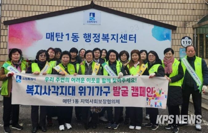KPSNEWS 김채경 기자 | 수원시 매탄1동의‘우리동네 돌봄살피미’명예사회복지공무원들은 지난 12일 위기가구 발굴과 매여울 온마음 희망브릿지 후원 캠페인에 나섰다.