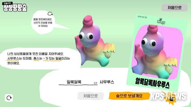 KPSNEWS 김채경 기자 | 경기문화재단 경기북부어린이박물관(관장 박종강)이 새로운 미디어 체험 전시물을 선보인다. 오는 4월부터 상설전시장 ‘공룡존’에서 어린이 관람객들을 맞이하는 〈만들어요! 상상팡팡숲〉은 중생대 백악기부터 현재까지 한반도에 살고 있는 다양한 생명들로 이루어진 가상의 숲에서 ‘나만의 공룡’을 만들 수 있게 한다. 정식 운영이 시작되는 4월 2일부터 일주일 동안 SNS 이벤트도 함께 진행된다.