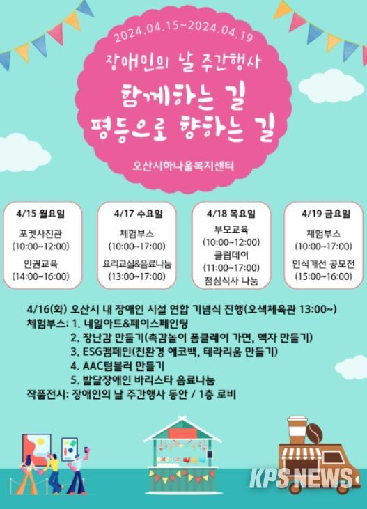 KPSNEWS 김채경 기자 | 오산시하나울복지센터는 오는 15일부터 19일까지 제44회 장애인의 날을 기념하여 주간행사를 진행한다고 밝혔다.
