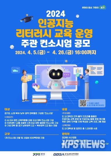 KPSNEWS 김채경 기자 | 경기도는 도민들의 인공지능(AI) 활용 역량 강화를 위해 ‘인공지능 리터러시 교육’ 사업에 참여할 대학 컨소시엄(연합체)을 26일까지 모집한다.