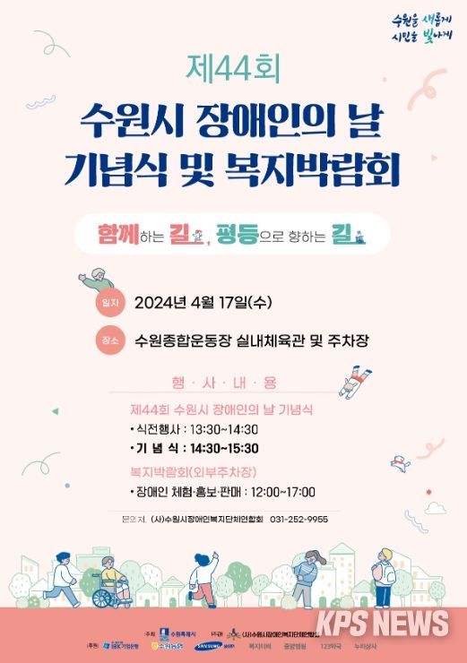 KPSNEWS 김채경 기자 | 수원시는 장애인의 날(4월 20일)을 기념해 17일 수원종합운동장 수원체육관에서 ‘제44회 수원시 장애인의 날 기념식 및 복지박람회’를 개최한다.
