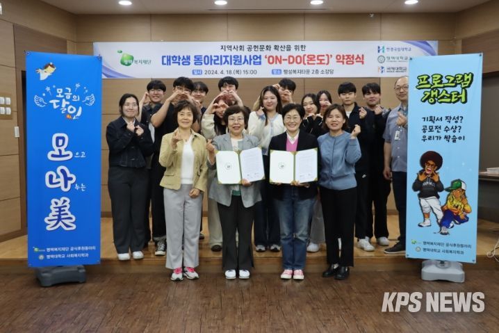 KPSNEWS 김채경 기자 | (재)평택복지재단(이사장 임종철)은 4월 18일 팽성복지타운 2층 소강당에서 지역사회문제 해결과 나눔문화 확산을 위한 ‘대학생 동아리지원사업’교류·협력 약정식을 진행했다.