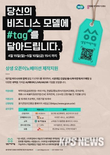 KPSNEWS 김채경 기자 | 경기도와 경기콘텐츠진흥원은 ‘2024년 상생 오픈이노베이션’ 제작지원 참여기업 10개 사를 오는 5월 10일까지 모집한다.