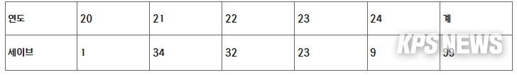KPSNEWS 김채경 기자 | KIA 정해영이 KBO 리그 역대 최연소 100세이브 달성에 1세이브만을 남겨두고 있다. KBO 리그 최연소 100세이브 기록은 2000년 임창용(삼성)이 23세 10개월 10일로 가지고 있다. 4월 24일 현재 22세 8개월 1일의 나이인 정해영은 임창용의 기록을 24년만에 경신할 가능성이 높다.