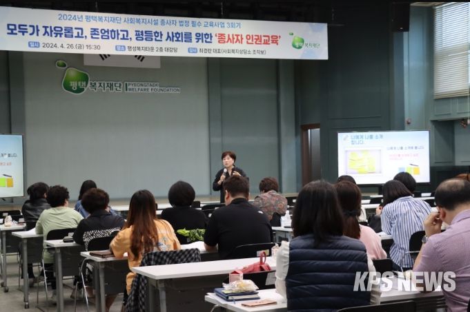 KPSNEWS 김채경 기자 | (재)평택복지재단(이사장 임종철)은 4월 26일 팽성복지타운 2층 대강당에서 사회복지시설 종사자 법정 필수 교육사업 3회기'종사자 인권교육」을 진행했다.