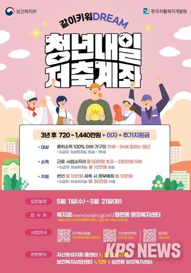 가입 대상자는 근로·사업소득이 있는 청년이며, 기준 중위소득 50% 이하의 만 15~39세 청년이 매월 10만 원씩 저축하면 정부가 월 30만 원을 지원해 3년 뒤 총 1,440만 원(본인 납입 360만 원 포함)의 적립금과 이자를 받을 수 있다.