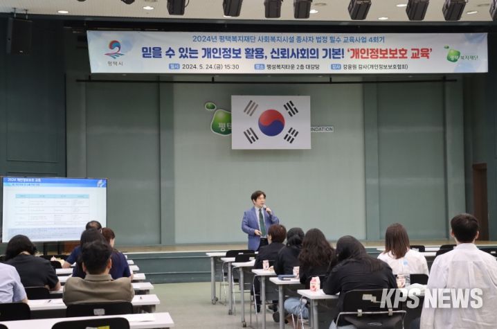 KPSNEWS 김채경 기자 | (재)평택복지재단(이사장 임종철)은 5월 24일 팽성복지타운 2층 대강당에서 사회복지시설 종사자 법정 필수 교육사업 4회기'개인정보보호교육'을 진행했다.