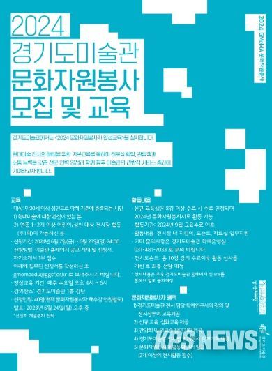 KPSNEWS 김채경 기자 | 경기문화재단 경기도미술관은 6월 26일부터 9월 4일까지 2024년 문화자원봉사자 양성교육프로그램을 진행할 예정이다.
