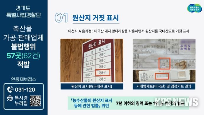 KPSNEWS 김채경 기자 | 원산지를 속이거나, 무표시 축산물을 냉동창고 바닥에 보관하는 등 관련 법령을 위반한 축산물 가공‧판매업소들이 경기도 특별사법경찰단에 대거 적발됐다.