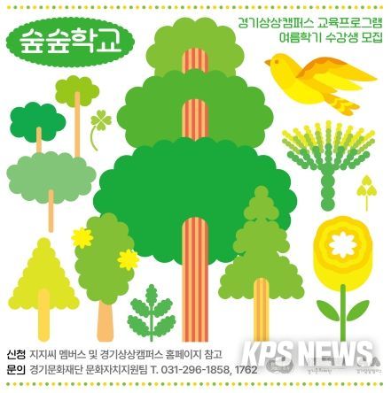KPSNEWS 김채경 기자 | 경기문화재단 경기상상캠퍼스는 2024 경기상상캠퍼스 교육 프로그램 '숲숲학교' 여름학기 수강생을 모집한다. 이번 여름학기(7~8월)에는 경기상상캠퍼스의 ‘숲’을 기반으로 ‘숲과 어린이’, ‘숲과 텃밭’을 주제로 하는 총 16개의 문화예술 교육 프로그램이 진행된다.