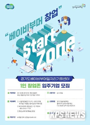 KPSNEWS 김채경 기자 | 경기도와 경기도일자리재단이 운영하는 경기도베이비부머일자리기회센터에서 ‘1인 창업존(Start Zone)’ 서비스를 7월 1일 출범하고 입주기업 모집을 시작한다고 25일 밝혔다.