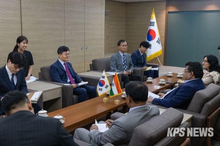 KPSNEWS 김채경 기자 | 김현곤 경기도 경제부지사가 4일 경기도청에서 M. B. 파틸(Patil) 인도 카르나타카주 중견ㆍ대기업ㆍ인프라개발 장관과 만나 양 지역 간 경제협력과 교류 활성화 방안을 논의했다.