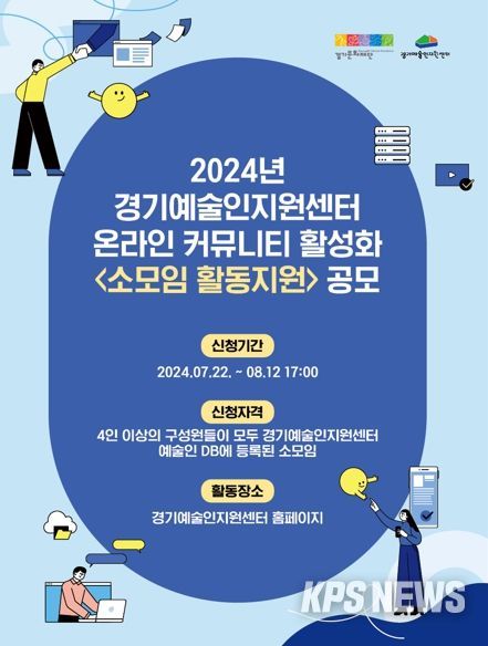 KPSNEWS 김채경 기자 | 경기문화재단은 21년도부터 시행하고 있는 경기도 예술인 DB등록자를 대상으로 '소모임 활동지원'을 공모를 시행한다. 이번 공모는 경기예술인지원센터 누리집(홈페이지) 기반으로 자발적인 예술인 온·오프라인 커뮤니티를 지원하고자 계획됐다.