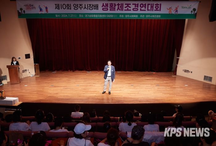 KPSNEWS 김채경 기자 | 강수현 양주시장이 27일 오후 양주시체육회에서 주최하고 양주시체조협회가 주관한 ‘제10회 양주시장배 생활체조경연대회’의 방문해 참가 선수들을 격려하고 있는 모습이다.