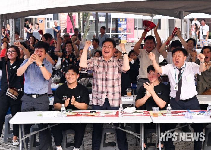 KPSNEWS 김채경 기자 | 양평군이 2일 양평물맑은시장 쉼터광장에서 파리올림픽에 출전한 양평군청 직장운동경기부 소속 유도 간판 김민종 선수의 거리응원전을 펼쳤다.