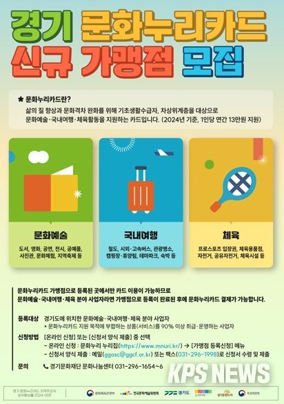 KPSNEWS 김채경 기자 | 경기문화재단이 문화누리카드 이용 활성화를 위한 신규 가맹점을 상시 모집한다.