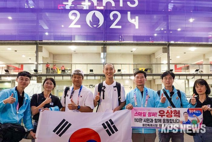 KPSNEWS 김채경 기자 | 이상일 용인특례시장과 시 대표단은 10일 오후(프랑스 파리 현지시각, 한국 시각 11일 새벽) 파리 올림픽 육상 높이뛰기 결선에 나선 용인특례시 소속 우상혁 선수(28)를 응원하고, 경기가 끝난 뒤 우 선수를 만나 격려했다.
