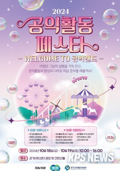 KPSNEWS 김채경 기자 | 경기도는 10월 18일과 19일 경기아트센터(수원시 팔달구)에서 ‘2024 공익활동 페스타 : 웰컴 투(WELCOME TO) 공익랜드’ 행사를 개최한다.