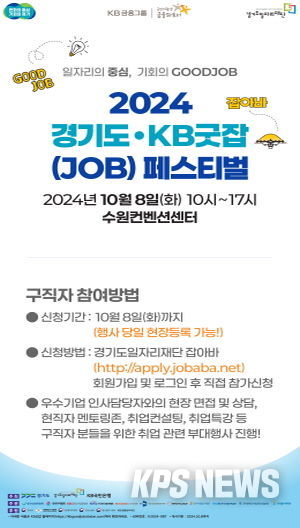 KPSNEWS 김채경 기자 | 경기도일자리재단은 경기도와 KB국민은행과 함께 ‘2024 경기도KB굿잡(JOB) 페스티벌’을 오는 10월 8일 수원컨벤션센터에서 개최한다.
