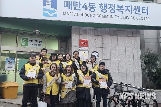 KPSNEWS 김채경 기자 | 수원시 영통구 매탄4동 지역사회보장협의체는 지난 17일 동절기를 맞아 관내 인근 주민과 상인들을 대상으로 복지 혜택을 받지 못하는 주민을 집중 발굴하고자 복지사업 책자 및 수원새빛돌봄 홍보물을 전달하며 ‘복지사각지대 발굴 캠페인’을 펼쳤다.
