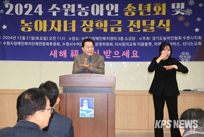 KPSNEWS 김채경 기자 | 이재준 수원시장이 한국농아인협회경기도협회 수원시지회 송년회에 참석해 “장애인들이 평범한 일상을 누릴 수 있도록 더 노력하겠다”고 말했다.