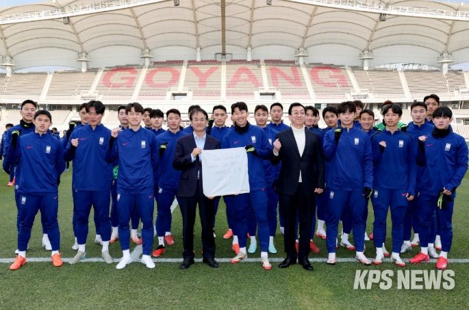 KPSNEWS 김채경 기자 | 이동환 고양시장이 지난 18일 고양종합운동장을 찾아 오만전을 하루 앞두고 맹훈련 중인 대한민국 축구대표팀 선수단을 격려했다.