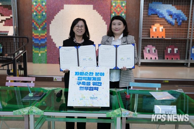KPSNEWS 김채경 기자 | 경기환경에너지진흥원과 한국토지주택공사 경기북부지역본부는 9일 수원시 소재 경기도 업사이클플라자에서 ‘자원순환 분야 협력체계 구축을 위한 업무협약’을 체결했다.