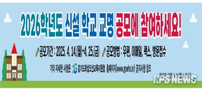 KPSNEWS 김채경 기자 | 경기도화성오산교육지원청은 내년 개교 예정인 가칭 세교2-2고 등 총8개교에 대한 ‘교명’ 및 학교명선정위원회 ‘학부모대표·주민대표 위원’을 공모한다.