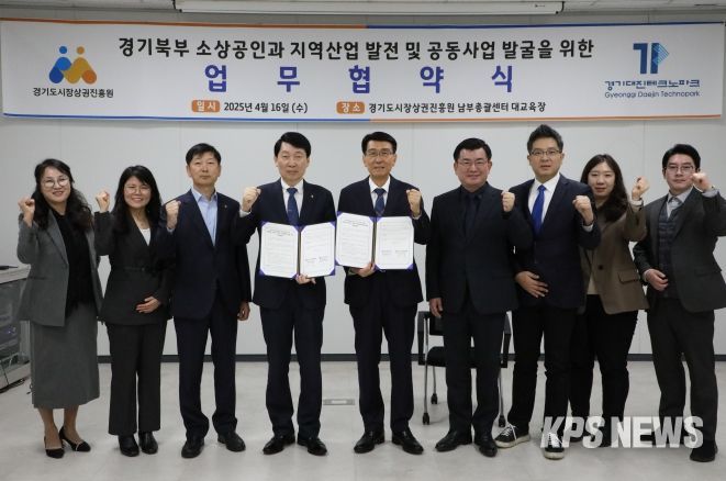 KPSNEWS 김채경 기자 | (재)경기대진테크노파크와 경기도시장상권진흥원은 16일 경기북부 소상공인 지원과 상권 활성화 촉진을 위한 업무협약을 체결하고 상호 협력하기로 했다.