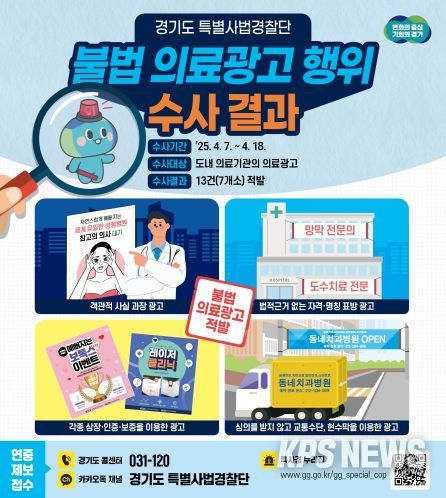 기이도 경기도 특별사법경찰단장은 “이번 수사는 불법 의료광고에 대한 경각심을 높이고, 의료기관 스스로가 자율적으로 광고 심의를 받을 수 있도록 유도하기 위한 계기가 됐다”면서 “앞으로도 불법 의료광고행위 수사를 지속·강화해 도민의 건강권 보호와 올바른 의료광고 환경 조성을 위해 지속적으로 노력하겠다”고 말했다.