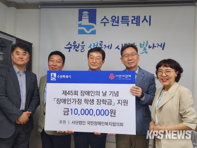 KPSNEWS 김채경 기자 | (사)국민장애인복지협의회가 “장애인 가정 유소년을 위한 장학금으로 사용해 달라”며 수원시에 1000만 원을 기부했다. 수원시는 장애인 가정 유소년 10명에게 1인당 100만 원씩 장학금을 배분할 예정이다.