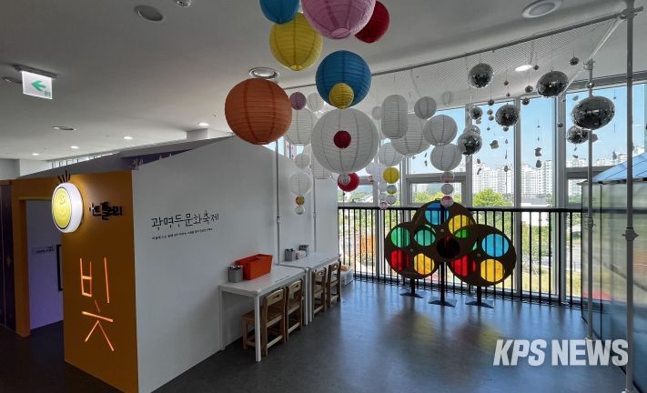 ▲아트갤러리‘경기의 빛’은 가평, 과천, 광명, 수원 등의 빛과 미디어 아트 관련 지역 축제를 주제로 빛과 그림자의 원리를 활용한 체험 및 창작 활동을 통해 감각적 표현력을 키운다.