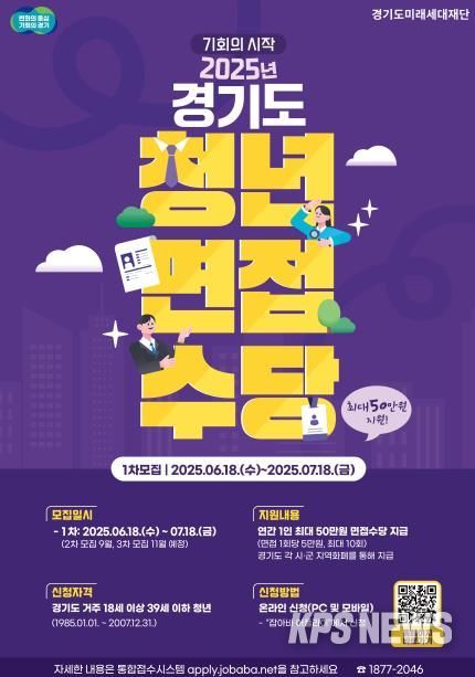 KPSNEWS 김채경 기자 | 경기도와 경기도미래세대재단이 오는 7월 18일까지 ‘2025년 경기도 청년면접수당 1차 모집’을 진행한다.