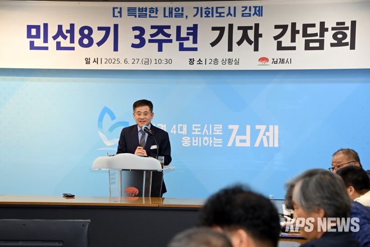 27일 김제시(시장 정성주)에 따르면 이날 시청 상황실에서 민선8기 3주년 기자회견을 열었다.