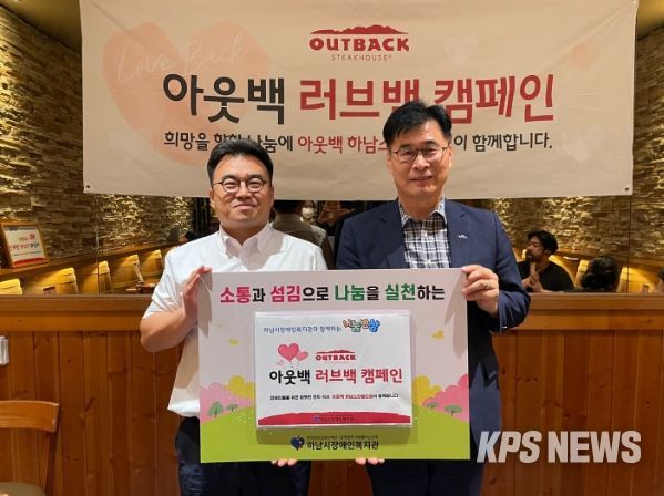 KPSNEWS 김채경 기자 | 하남시장애인복지관(관장 민복기)은 지난 6월 25일 아웃백 스테이크하우스 하남스타필드점(점주 오정근)과 함께 올 해 두번째 '아웃백 러브백 캠페인'의 나눔 반상 행사를 진행했다고 밝혔다.