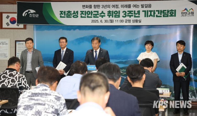 KPSNEWS 김채경 기자 | 진안군은 6월 30일 군청 상황실에서 민선8기 3주년을 맞아 기자간담회를 열고, 군정 주요 성과와 향후 비전을 발표했다.