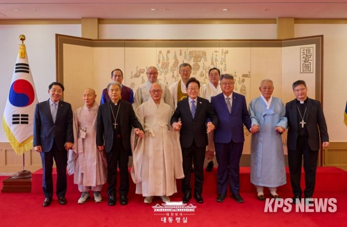 KPSNEWS 김채경 기자 | 이재명 대통령은 9일 대통령실에 7대 종교지도자 11명을 초청해 '사회통합의 길, 종교와 함께' 행사를 열었다고 강유정 대변인이 브리핑을 통해 밝혔다.