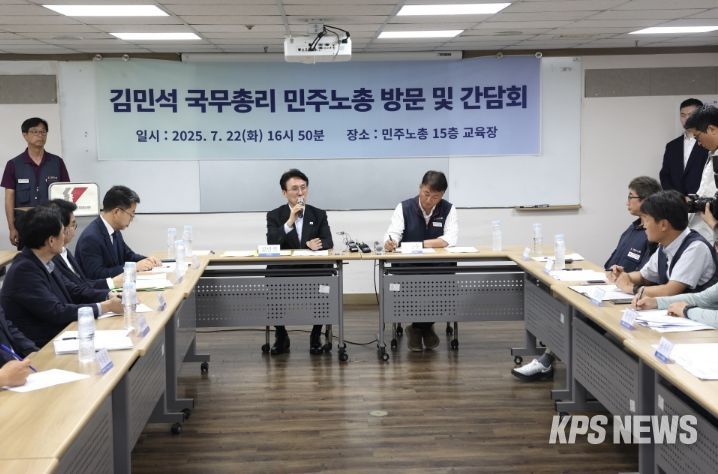 KPSNEWS 김채경 기자 | 김민석 국무총리는 7월 22일 오후 한국노동조합총연맹(한국노총)과 전국민주노동조합총연맹(민주노총)을 방문하여 지도부와 인사를 나누고 환담의 시간을 가졌다.