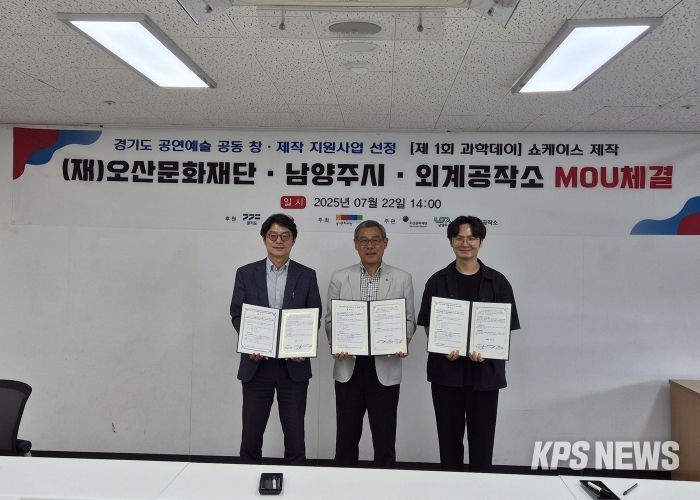 KPSNEWS 김채경 기자 | 오산문화재단은 경기도 공연예술 공동 창·제작 지원사업 쇼케이스 제작형 부문에 단독 선정된 데 이어, 지난 7월 22일 공동 제작을 위한 3자 간 업무협약(MOU)을 체결했다고 밝혔다.