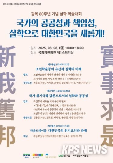 KPSNEWS 김채경 기자 | ▶ 8월 8일, 국회의원회관서 실학 관점으로 국가 과제 돌아보는 학술대회 개최
